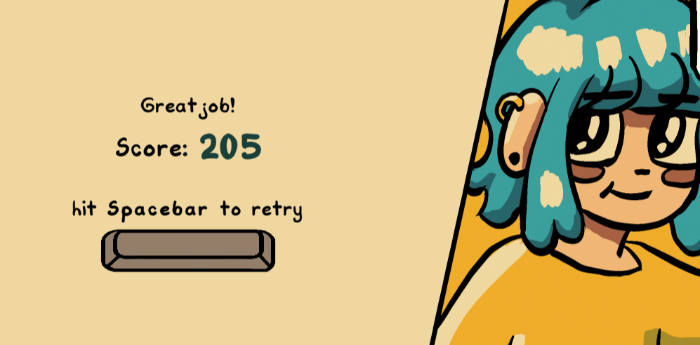 1 - 2) it's just a high score game! Pressing space during the outro resets the game.